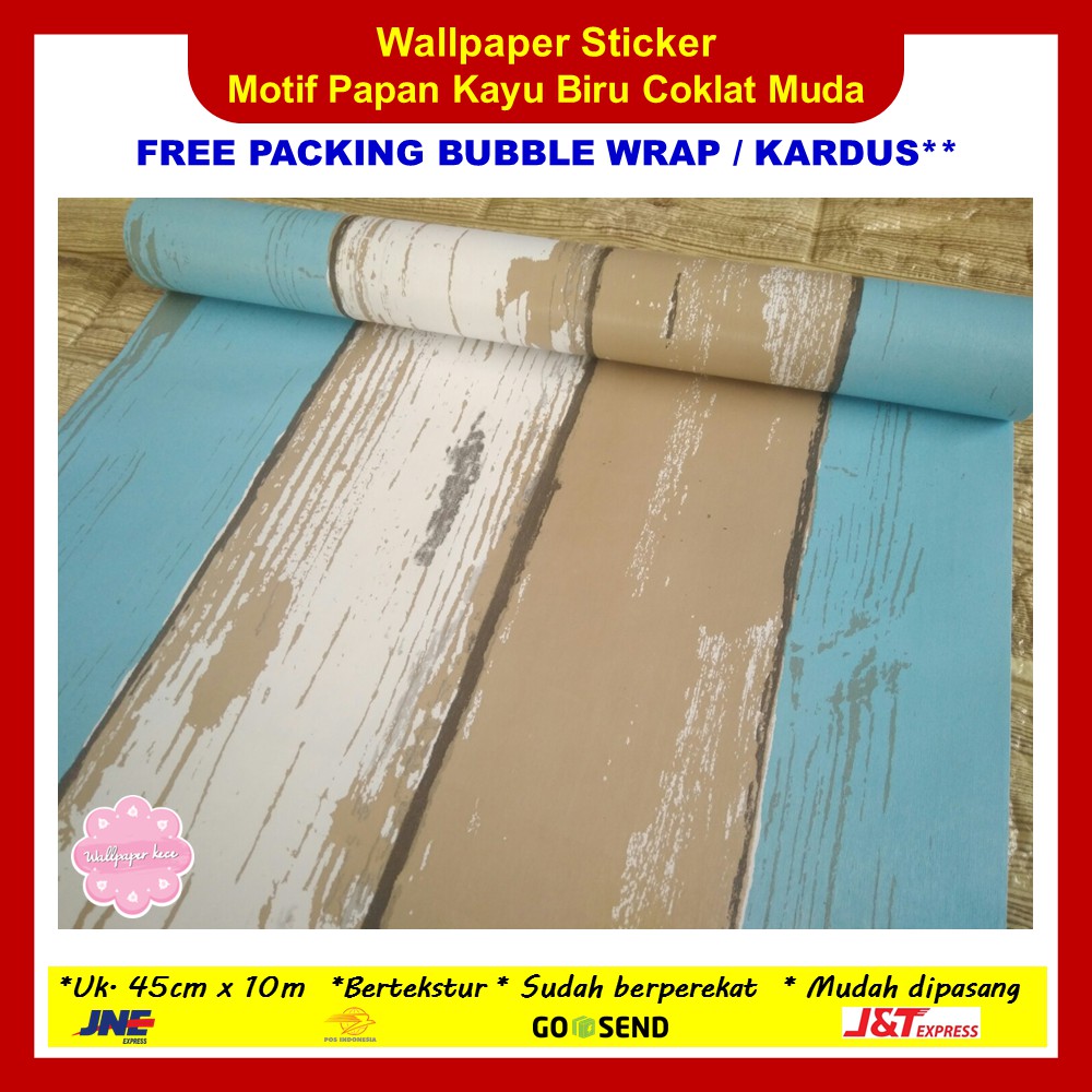 Wallpaper Sticker Dinding 45cm X 10m Papan Kayu Kuning Gading Biru